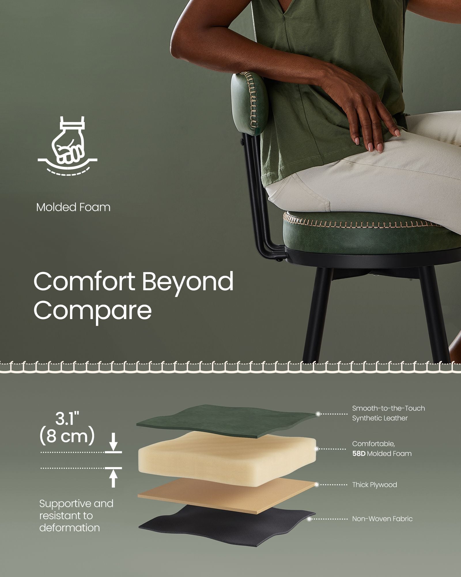 Comfort and Function: With 3.1-inch thick molded foam and smooth synthetic leather, these swivel bar stools offer comfortable seating. The 360∘ swivel seat helps keep every conversation within reach at your kitchen island or home bar.