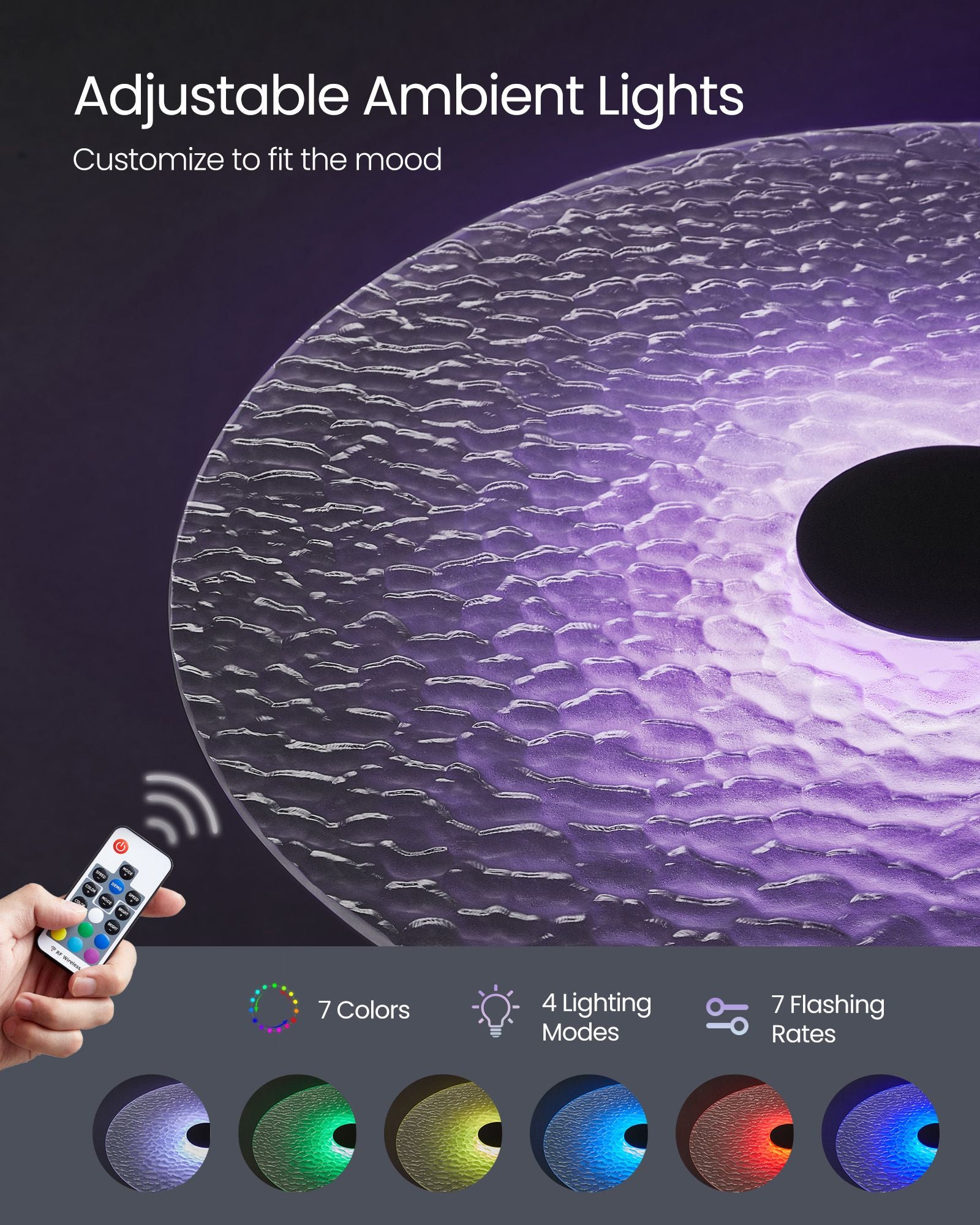 Ambient RGB Lighting: Featuring a ripple glass tabletop with built-in RGB lights, this bar table offers four lighting modes: static, 7-color change, flashing, and breathing, which are conveniently controlled by remote.