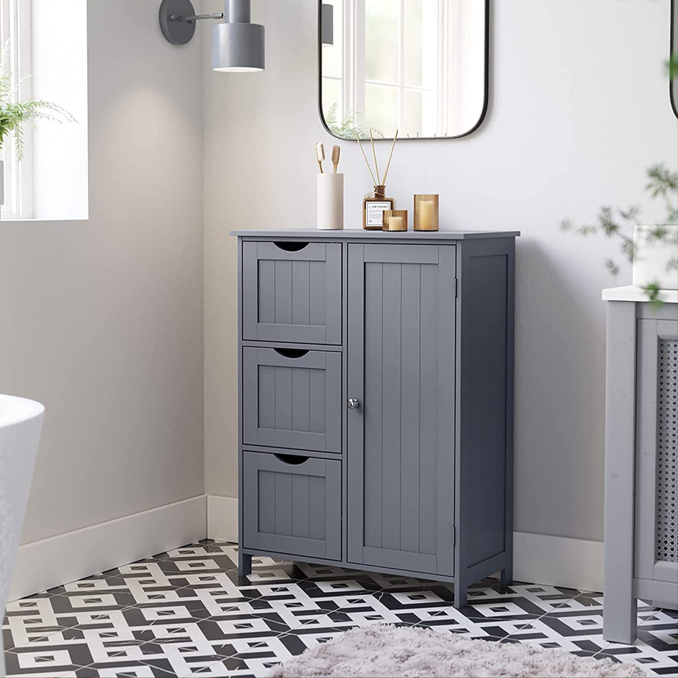 Bathroom Floor Cabinet - Adjustable Interior Shelf, Gray Finish