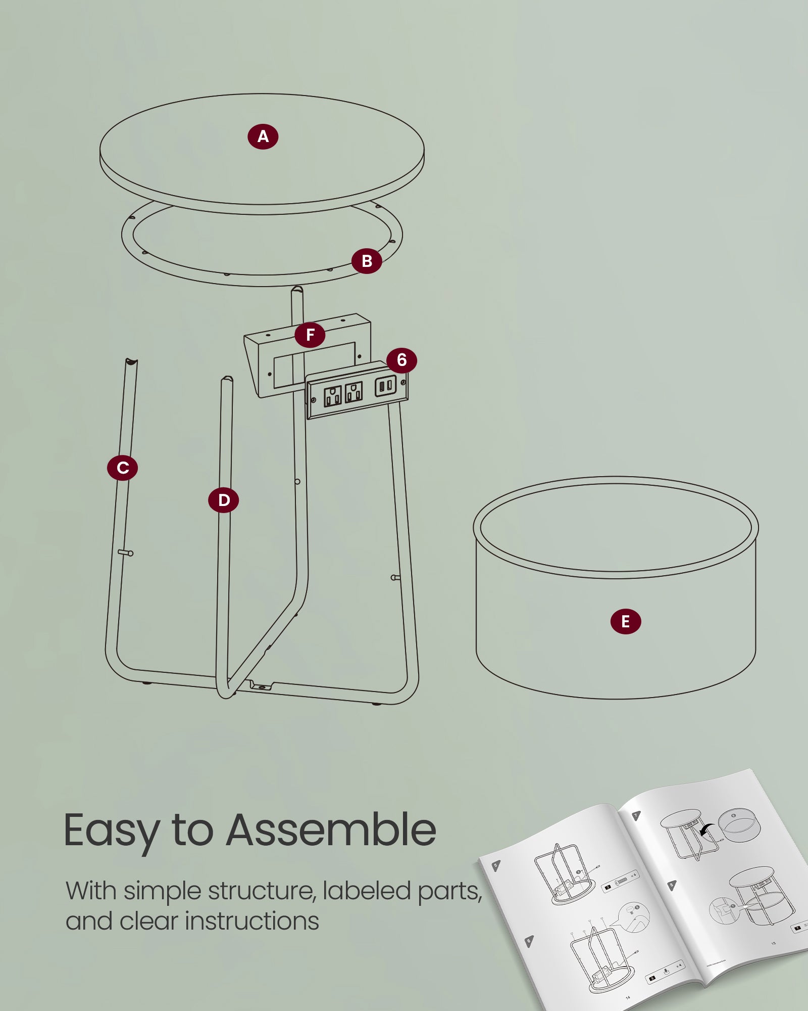 This round side table includes 2 AC outlets and 2 USB ports discreetly placed under the top, letting you charge your phone, tablet, lamp, and more—without cluttering your space.