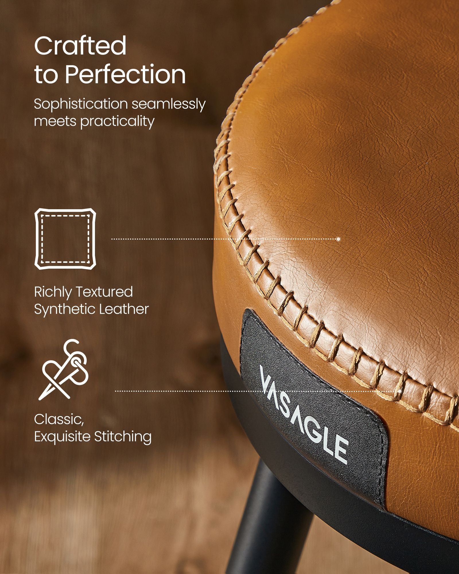 Refined Style and Detail: Part of the EKHO Collection, these backless bar stools blend textured synthetic leather with refined stitching, offering a polished look that enhances any kitchen, home bar, or dining space.