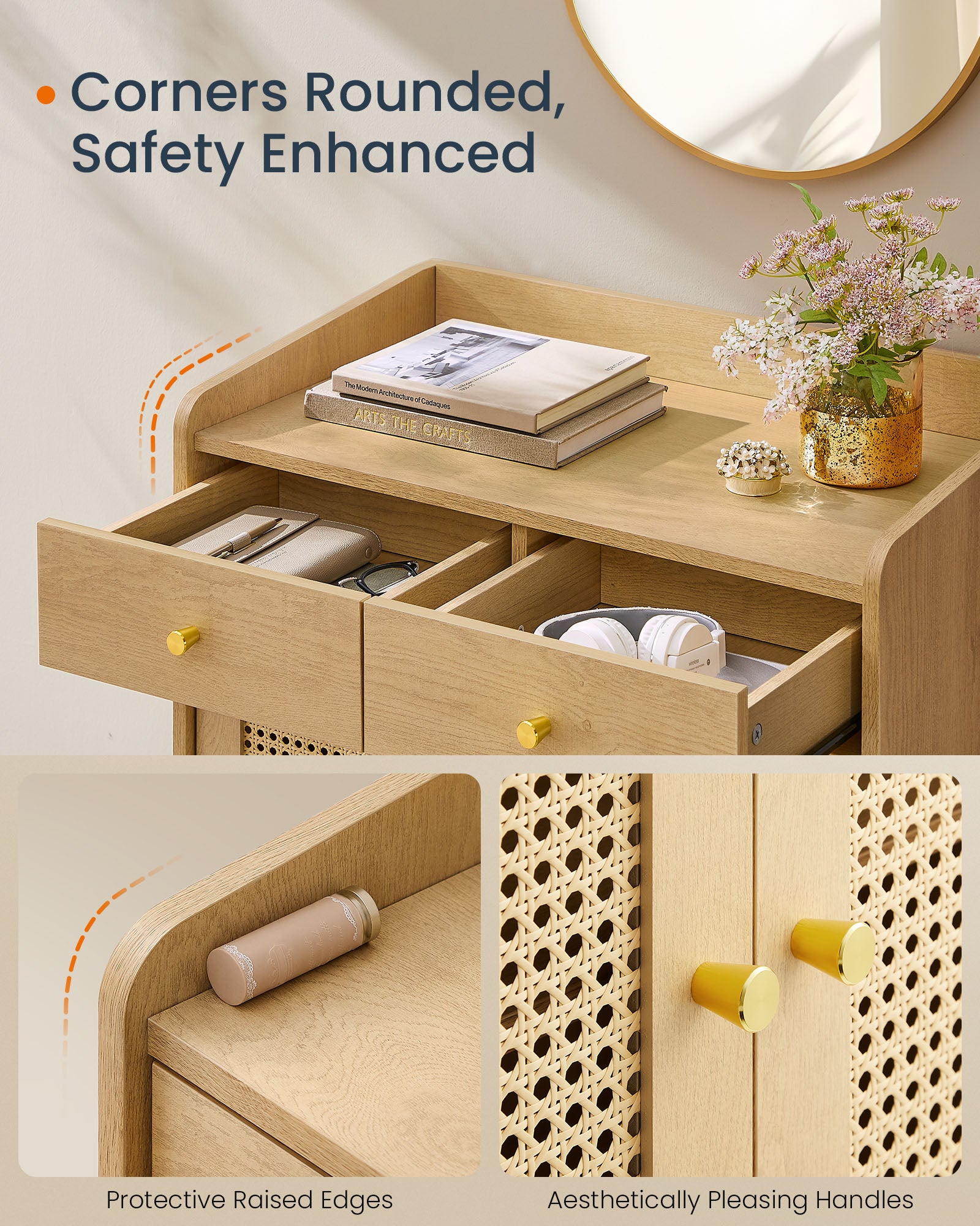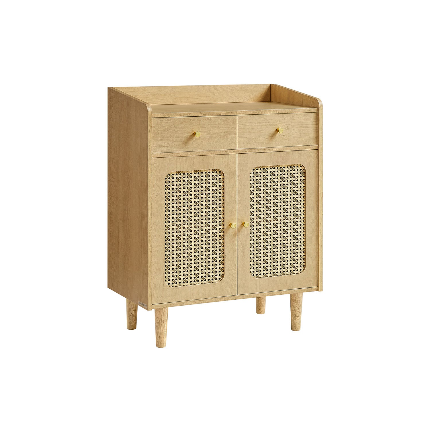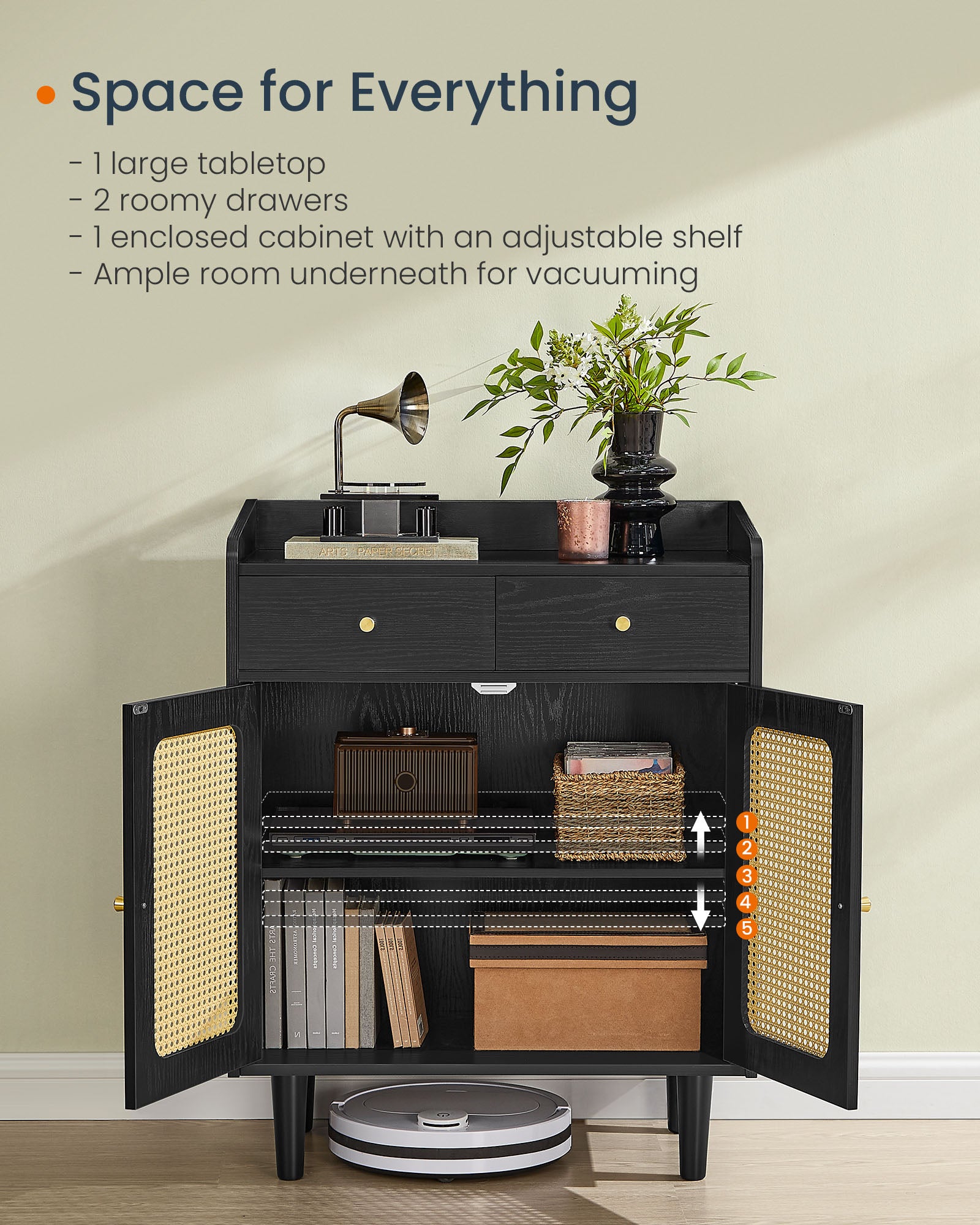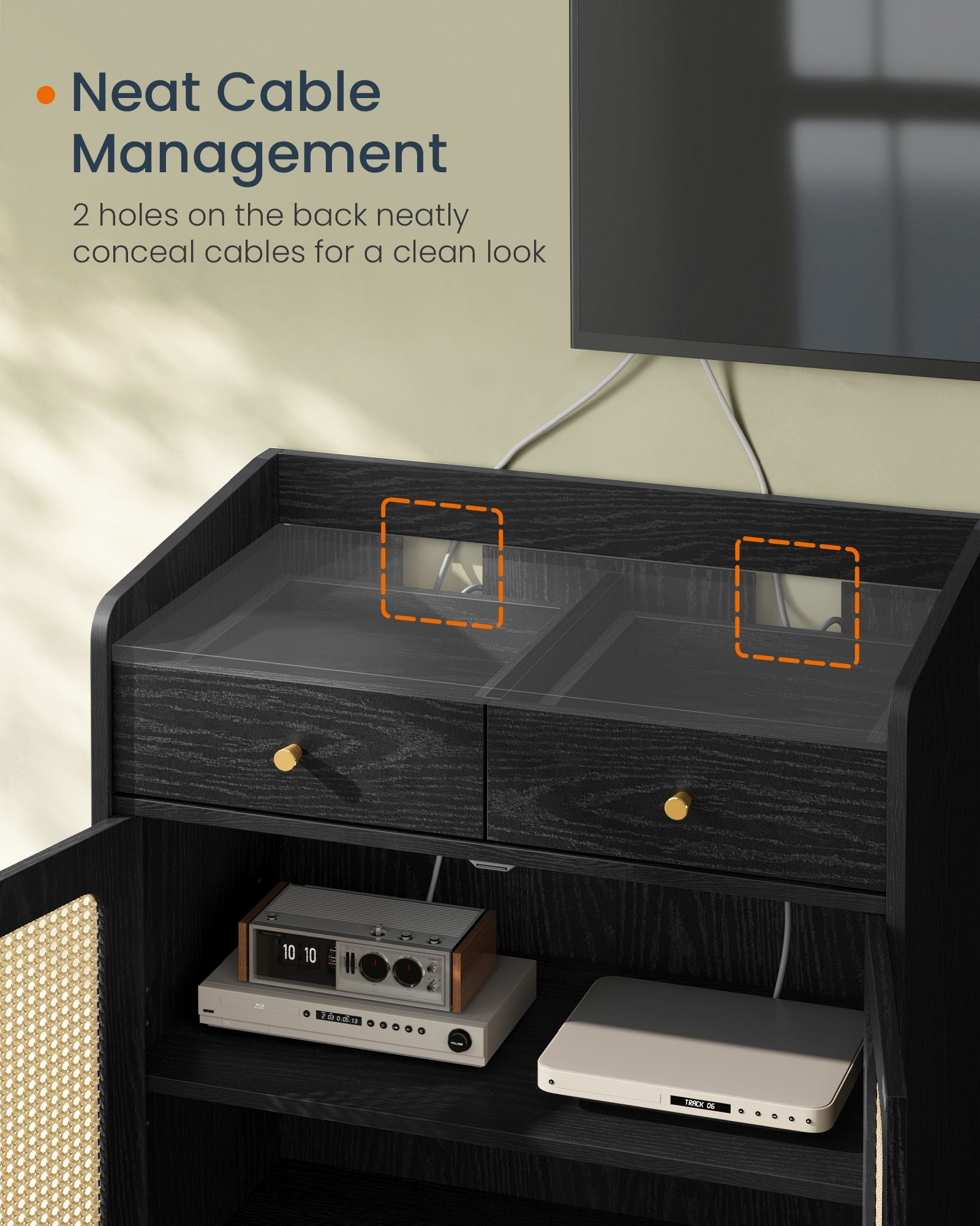 BOHO Buffet Cabinet, Drawers, Adjustable Shelf, Solid Wood Legs, Woven Design, Cable Holes
